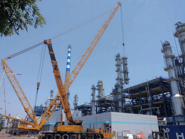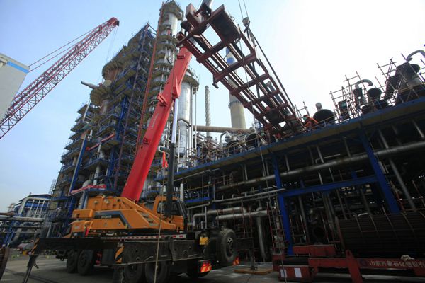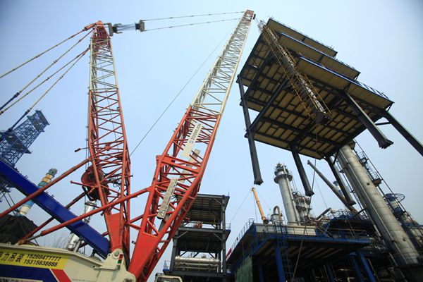 四年一次的齊魯石化大檢修正激戰(zhàn)猶酣。齊魯建設(shè)作為主力軍承擔(dān)了煉油廠、烯烴廠等8個(gè)生產(chǎn)廠34套生產(chǎn)裝置、5200多項(xiàng)檢修改造任務(wù),承擔(dān)的吊裝施工作業(yè)占大修改造總吊裝任務(wù)的85%以上。多區(qū)域多裝置同步作業(yè),共投入了650噸、500噸、260噸、160噸等各類(lèi)大型吊車(chē)70余臺(tái),為歷次大檢修之最。